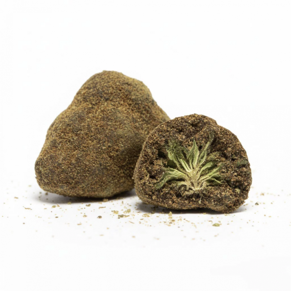 Es gibt Produkte, die man auf den ersten Blick erkennt. Moon Rock CBD gehört dazu. Rund, kompakt, leicht unregelmäßig, überzogen von einem weißen Belag, der das Licht einfängt – es sieht genauso aus, wie es verspricht: etwas Besonderes, Konzentriertes, ein wenig Außergewöhnliches.