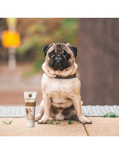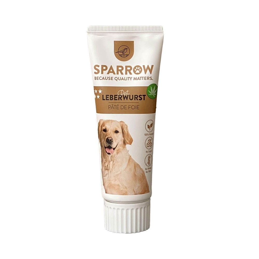 Our CBD treat for dogs is specially designed to please our four-legged friends. Thanks to its special opening tube, just a few squeezes are all it takes to reward your pet. He'll love this CBD treat in a tube and will do anything to get his daily dose of delight and pleasure. This treat is also ideal for hiding and administering medication. It offers great flexibility of use and transforms taking medication into a moment of pleasure and indulgence for your pet. SPARROW's CBD liver treat in a tube is made without artificial flavors, attractants or additives. Natural ingredients alone are enough to satisfy the delicate palate of our dog friends.
