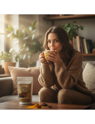 O Golden Latte, também conhecido como «leite dourado», é famoso pelo seu perfil aromático reconfortante. Aqui, encontramos notas de curcuma, quentes, ligeiramente picantes, suavizadas por uma base láctea ou vegetal, dependendo da sua preparação.